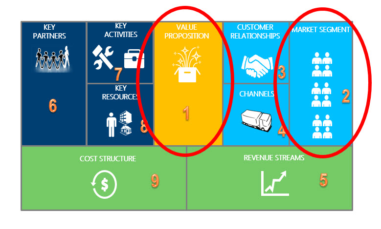 In same cases, the market segment (number 2) is given, so organizations analyze number 1 and 2 together. My recommendation even in those “clear cases” is to really make sure that the market segment is what one expects, as it could be too big, to complex and the value proposition does not fit into all of the scenarios in the target market segment.