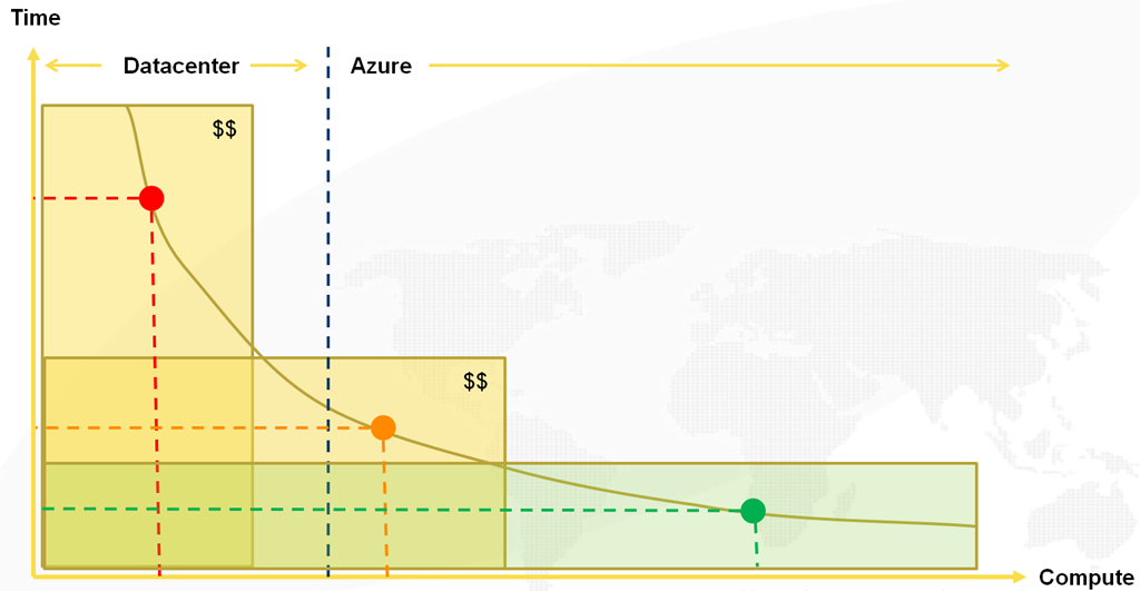 The more capacity is allocated for the calculation, the more it will cost but this cost could easily be justified by opportunities to make more money due to time savings. In the picture above, it is easy to see that there will be a point in time when your own datacenter just does not scale where it needs to scale and that is why solutions/platforms such as Windows Azure will come to the play. This is also why we have to understand that new technologies such as cloud will bring new innovations to the market and this will definitely reflect on the valuations of these companies.